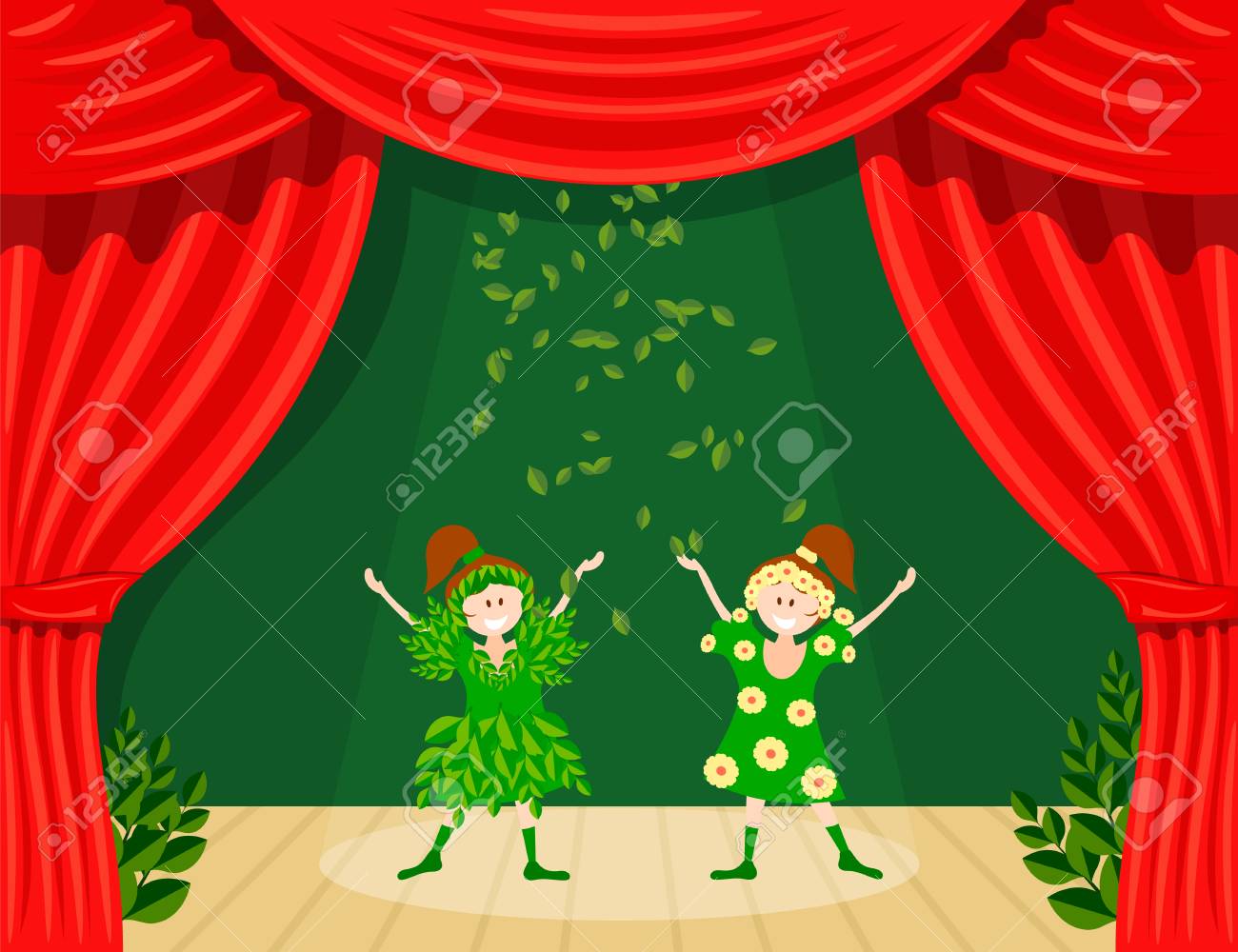 Teatro Infantil Abstracto Ninas En El Escenario Del Teatro La Obra De Teatro En El Jardin De Infantes Ilustraciones Vectoriales Clip Art Vectorizado Libre De Derechos Image 95150845