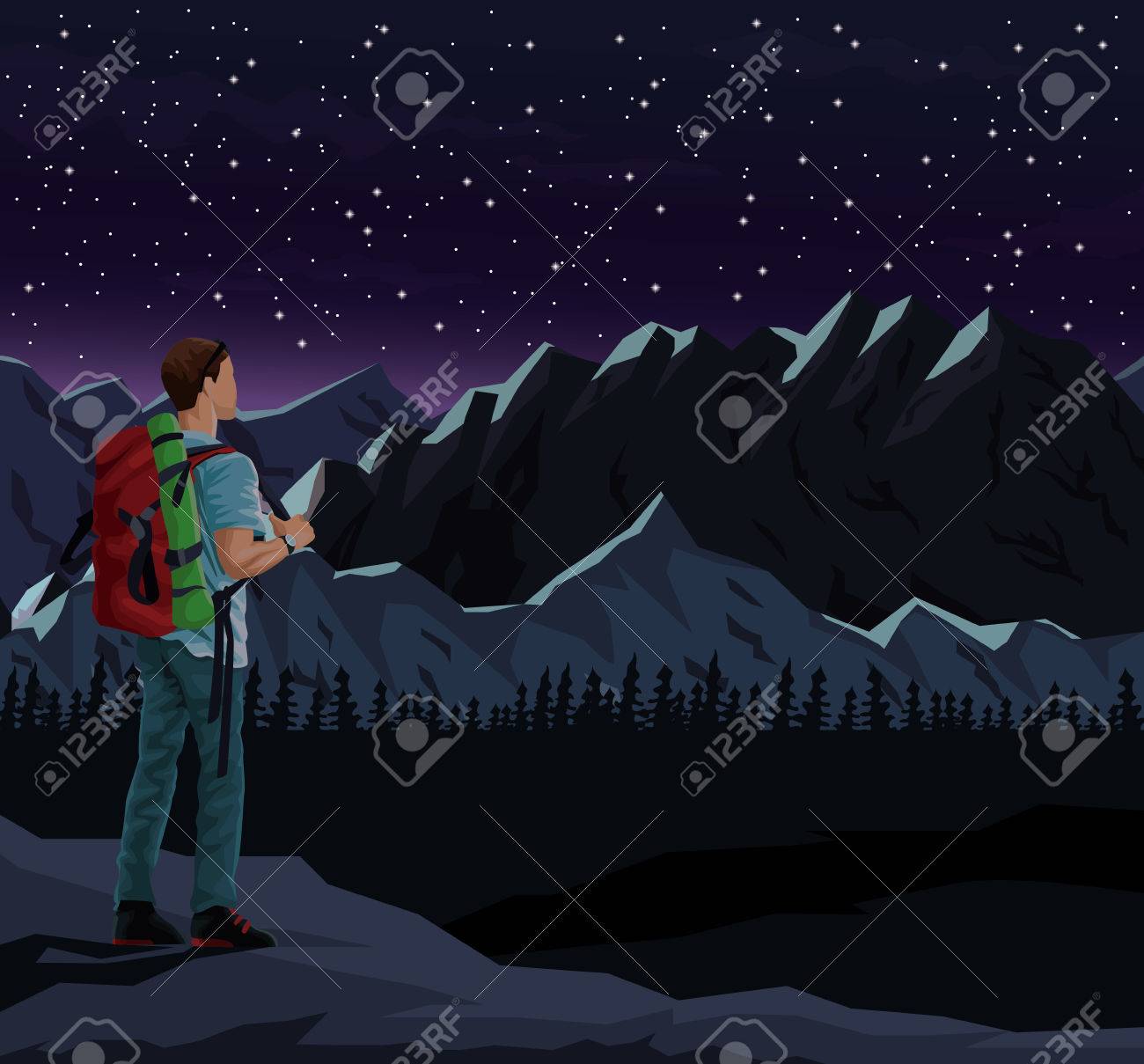 星空のベクトル図を探して山登山と雪山のリアルな夜間景観背景のイラスト素材・ベクタ - Image 78853892.