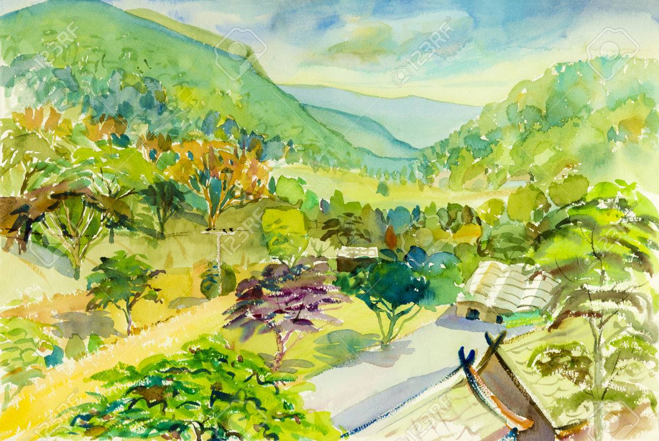 水彩風景元絵山と青の背景で感情のカラフルです。 の写真素材・画像素材 Image 82603705.