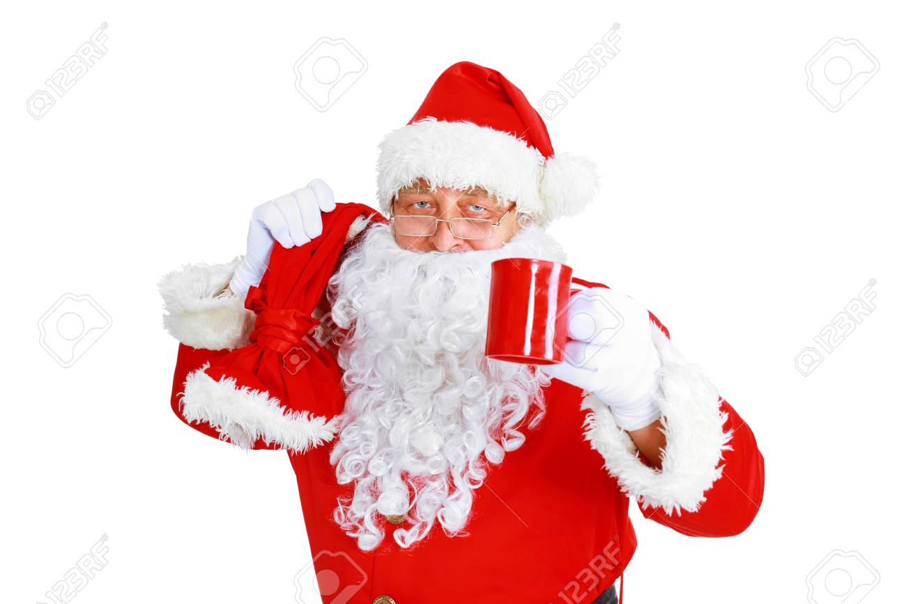 Immagini Stock - Babbo Natale Con Una Tazza Di Caffè Su Sfondo Bianco Image 91449081.